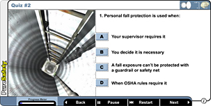 Objectives: Identify common fall hazards; Recognize the types of equipment and methods that provide fall protection; List the components of a personal fall protection system; Recognize the importance of inspecting fall protection equipment; Recall important information about fall rescue plans